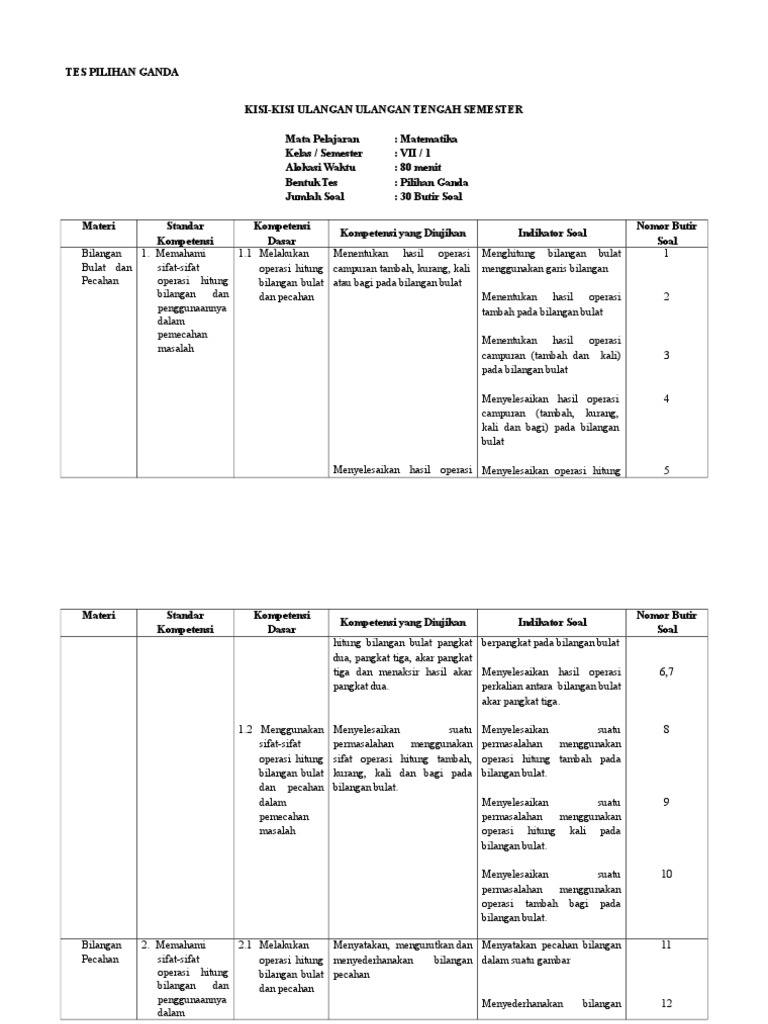 Contoh soal operasi hitung bilangan bulat dan pecahan. Memahami sifat bilangan bulat negatif menentukan hasil dari operasi penjumlahan pengurangan perkalian pembagian bilangan bulat menentukan kpk kelipatan persekutuan terkecil dan fpb faktor persekutuan terbesar mengenal bentuk bentuk pecahan mengubah bentuk pecahan ke bentuk pecahan lain membandingkan pecahan. Rumus matematika smp kelas 7 aljabar. Menemukan rumus suku umum barisan bilangan dan men.