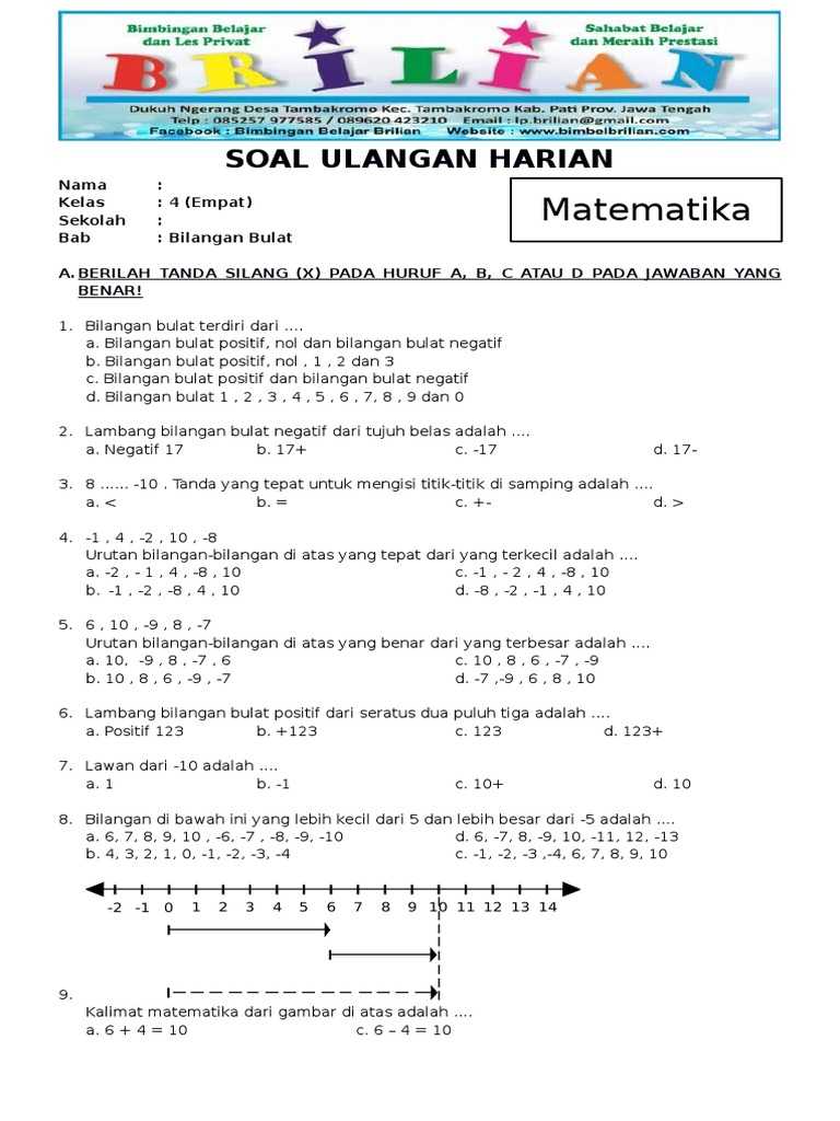 Contoh Soal Bilangan Bulat Sd Contoh Soal 1