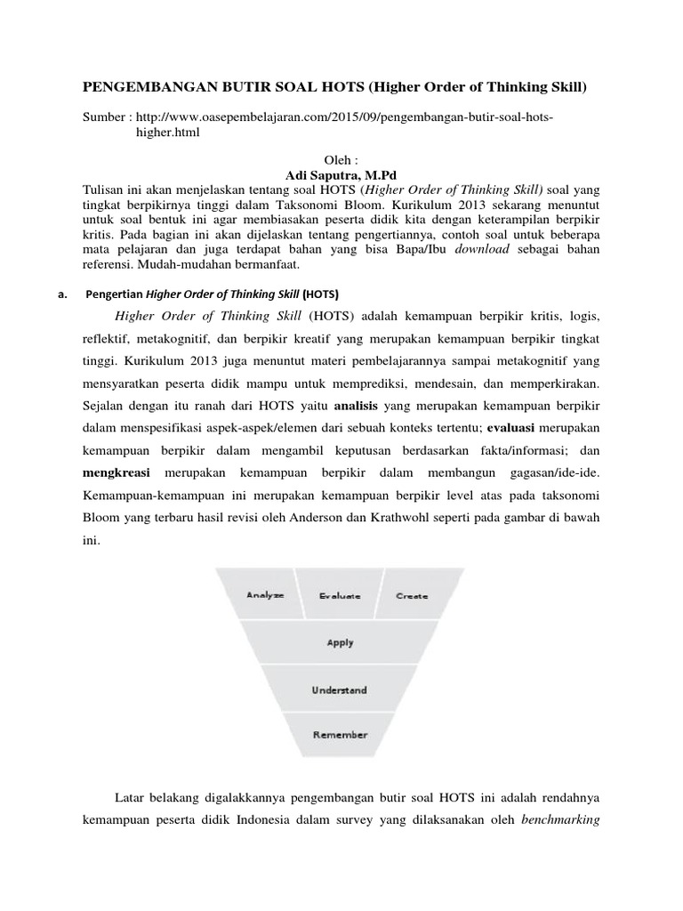 Panduan Penyusunan Soal Hots Higher Order Thinking Skill Pdf