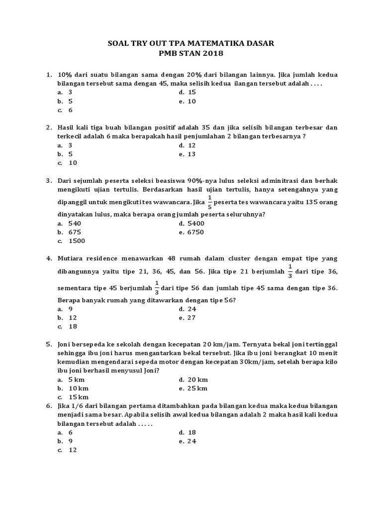 Saya akan membagikan contoh tes potensi akademik tpa matematika dasar 1. Pt zenius education 2018 logo merek dan isi website ini adalah hak cipta pt zenius education. Mempelajari contoh soal tes kerja matematika dasar banyak ditempuh oleh mereka yang sedang mempersiapkan diri untuk mengikuti tes psikotes di sebuah perusahaan.