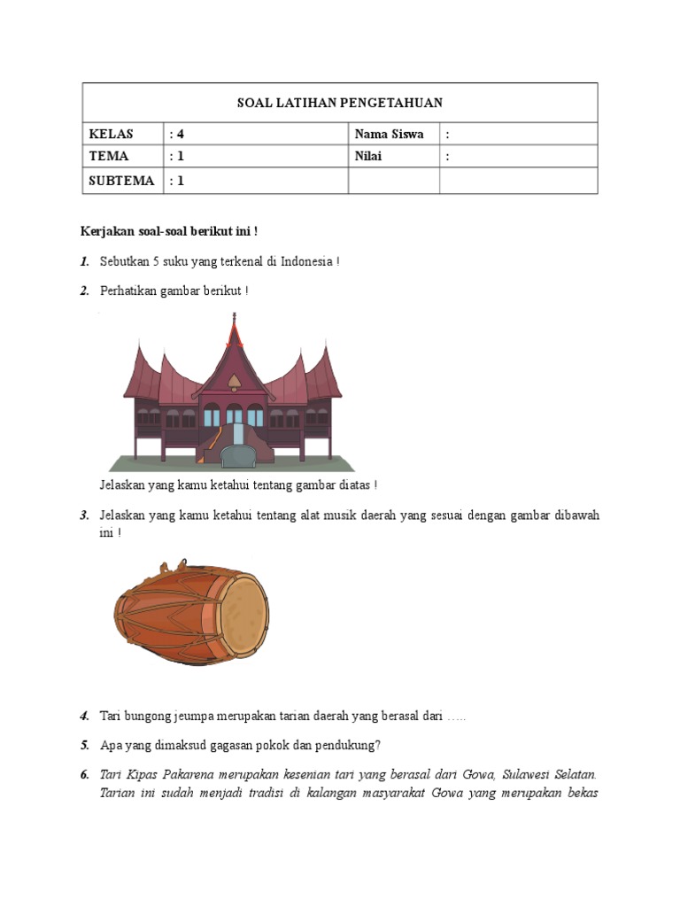 Soal Latihan Pengetahuan Tema 1 Sub 1 Kelas 4