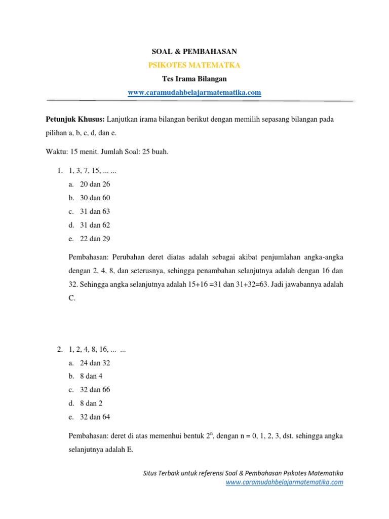 Contoh Soal Psikotes Deret Angka Dan Jawabannya Pdf