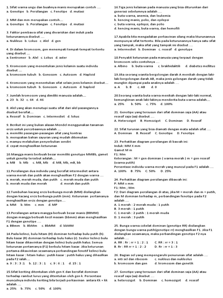 Soal Dan Kunci Jawaban Materi Genetika Kelas Xii Info
