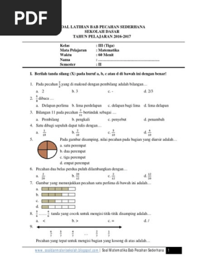 Soal Dan Jawaban Matematika Pecahan Kelas 3 Sd Soal Sd