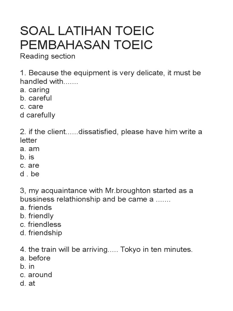Contoh Soal Toeic Dan Pembahasannya Pdf Download