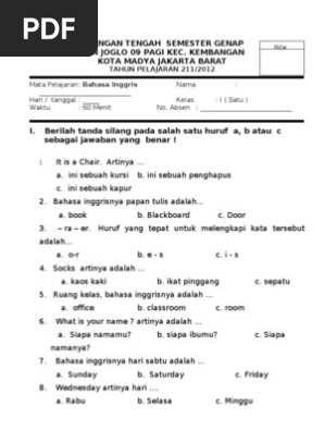 Contoh Soal Uts Semester Ganjil Bahasa Inggris Sd Kelas 1