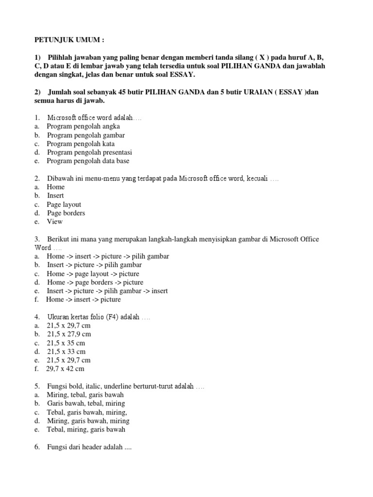 Soal Essay Ms Word Dan Jawabannya