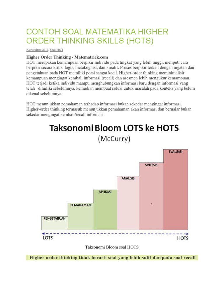 Contoh Soal Matematika Higher Order Thinking Skills Docx