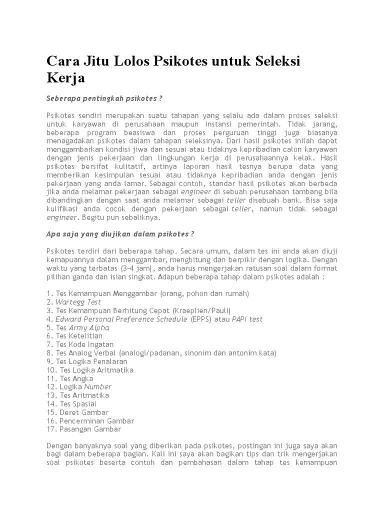 Pdf Contoh Soal Psikotes Kerja Dan Jawaban Havid Aji