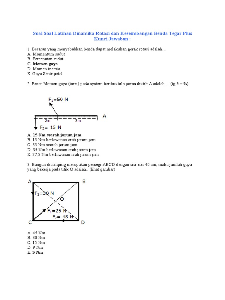 Soal Dinamika Rotasi A Pilihan Ganda Pilihlah Jawaban Yang