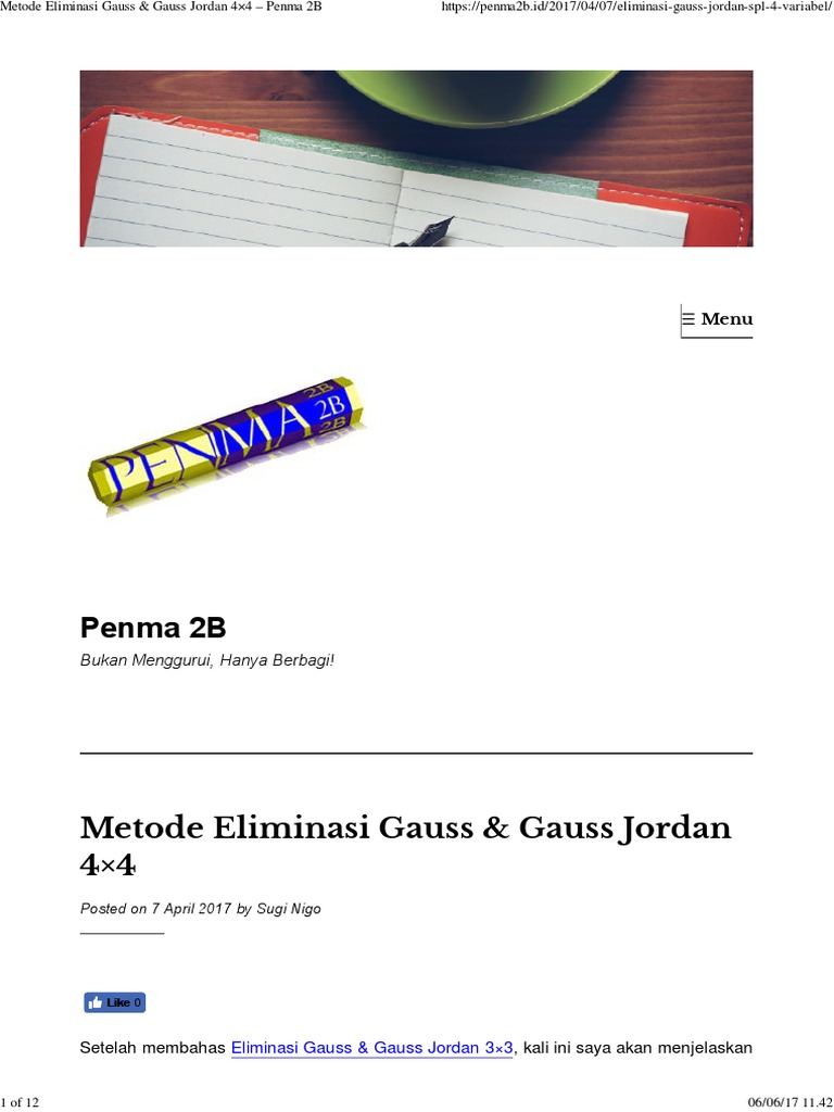 Metode Eliminasi Gauss Dan Gauss Jordan Berbagi