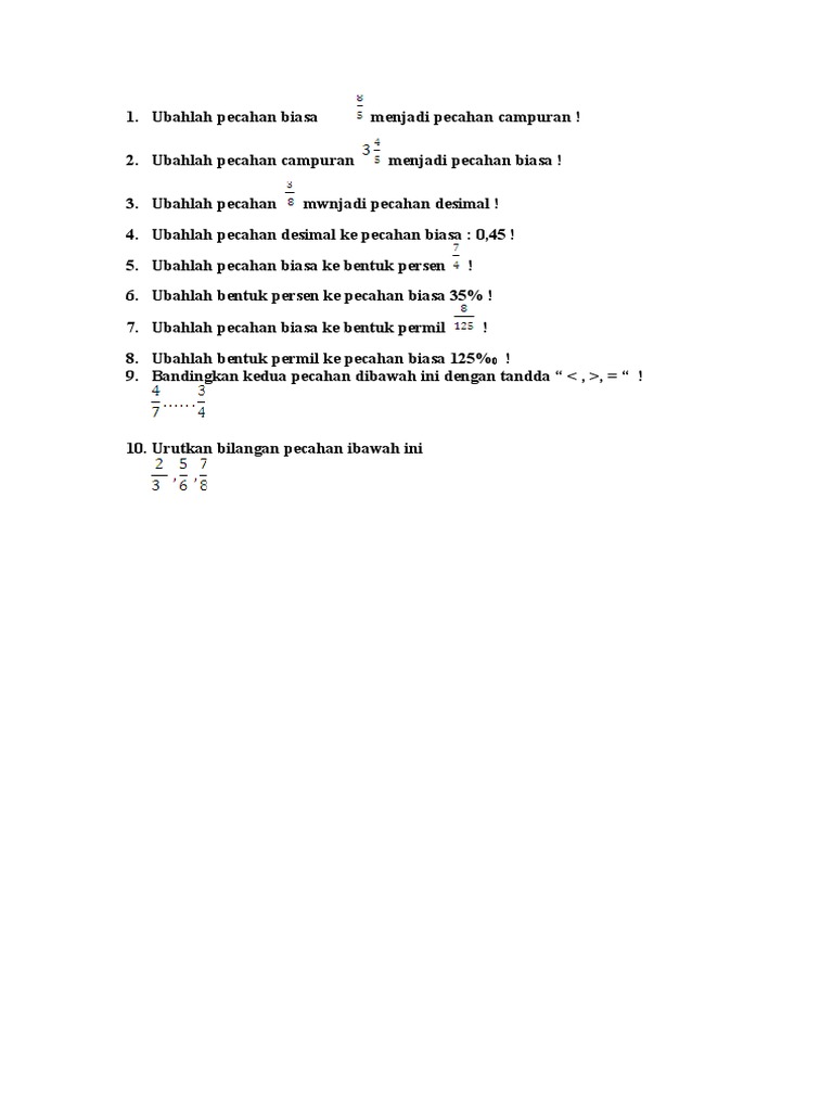 Mengubah Pecahan Biasa Menjadi Perbandingan Soal Dan Jawaban