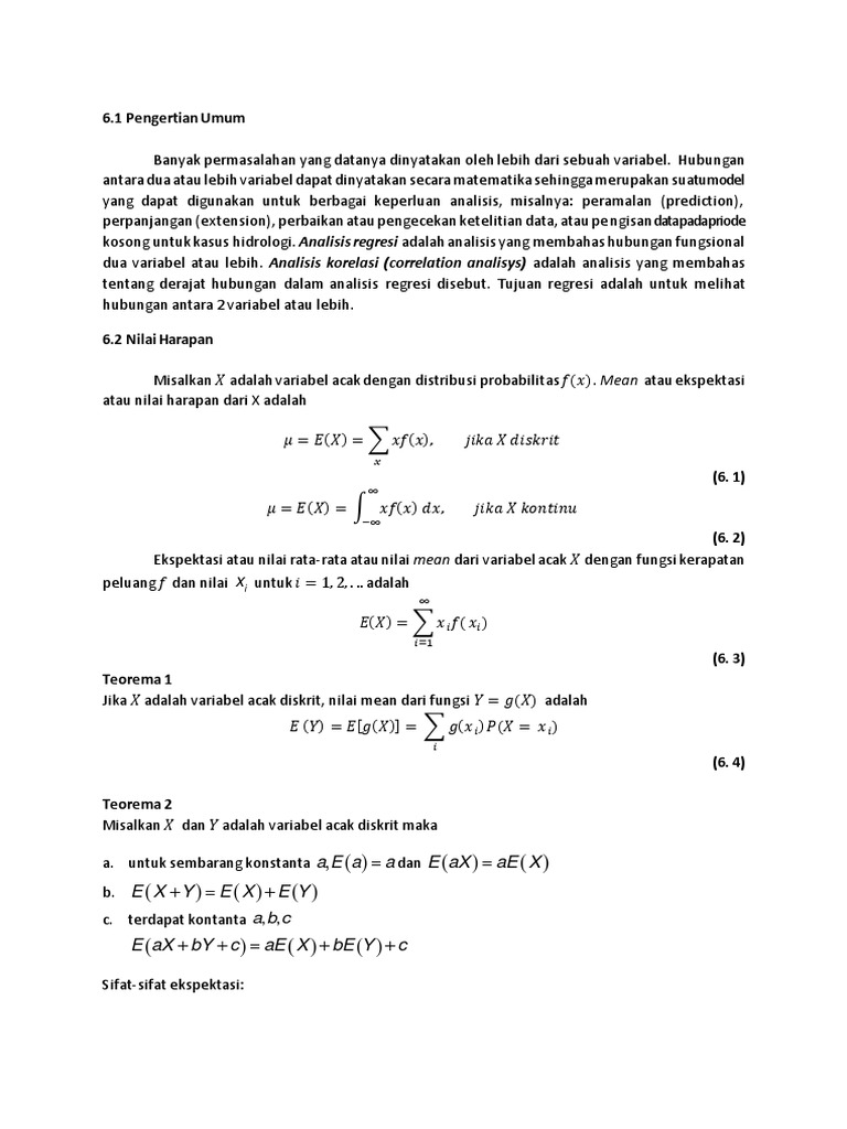 Ekspektasi Varian Kovarian Korelasi Regresi