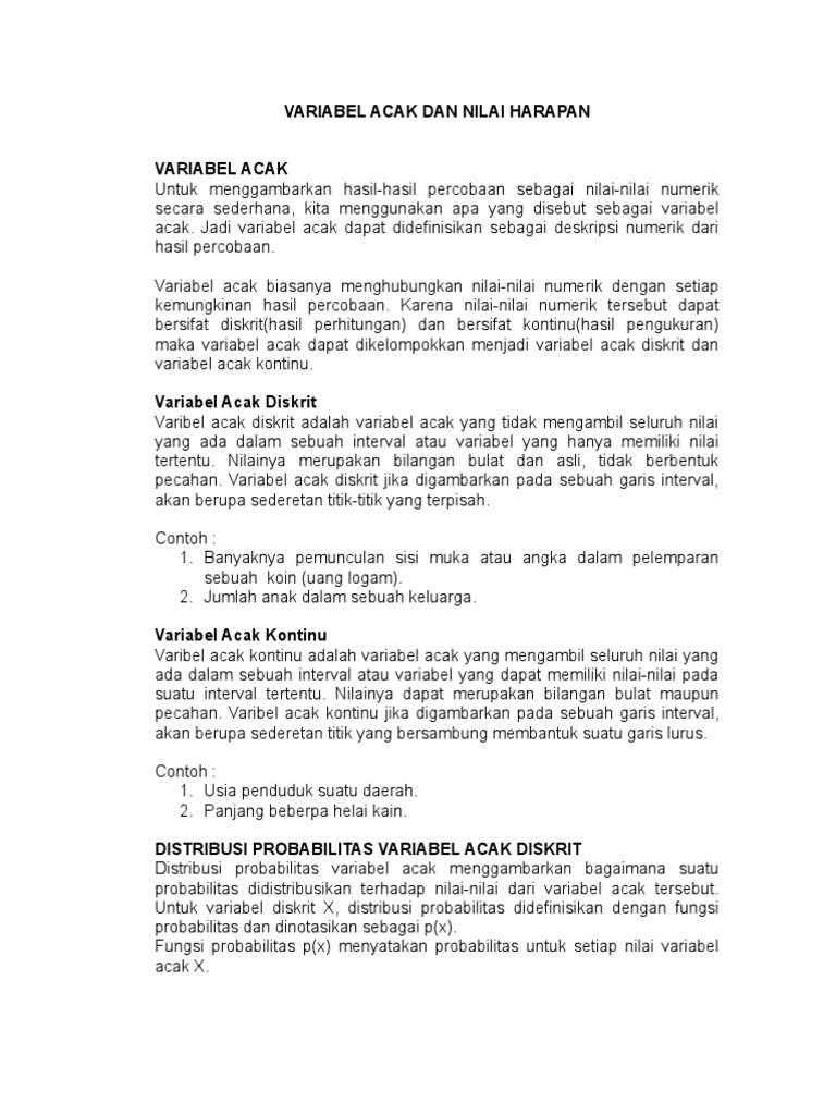 Variabel Random Dan Nilai Harapan Oleh Azimmatul Ihwah Pdf