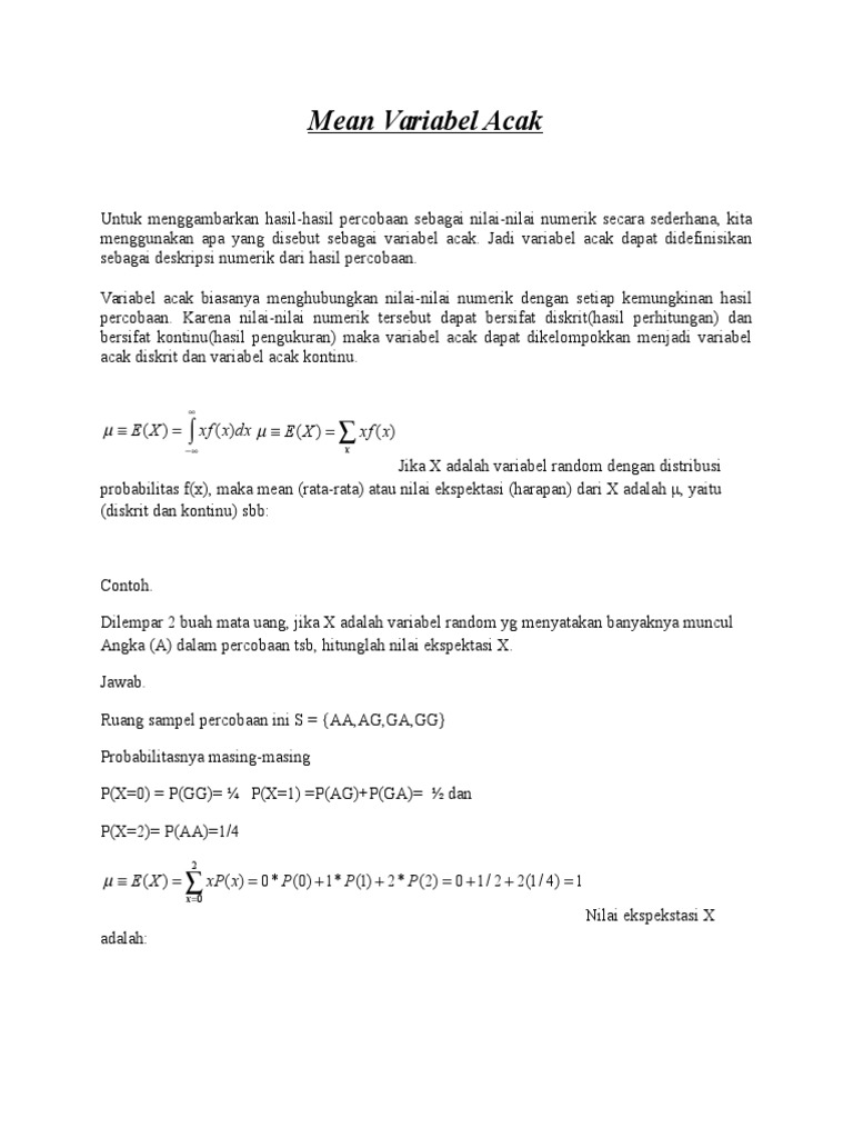 Sedangkan distribusi peluangnya disebut distribusi peluang variabel acak diskrit. Konsep variabel acak dan nilai harapan ex 55700 pm. Darwison mt file ini akan memberikan penyelesaian dengan.