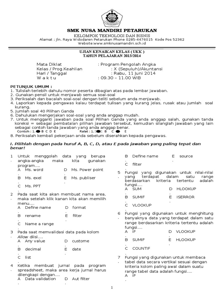 Contoh Soal Soal Microsoft Excel Kelompok1xe