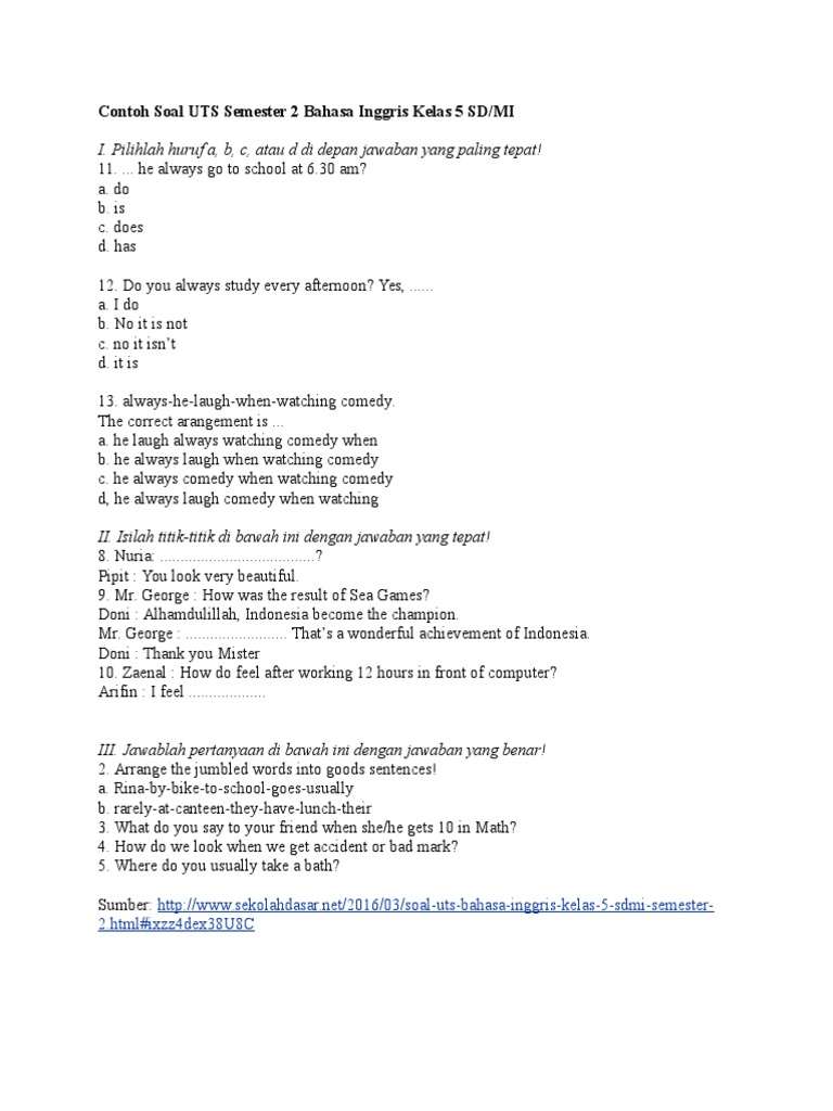 13 Contoh Soal Uts Bahasa Inggris Lengkap Untuk Nilai Bagus