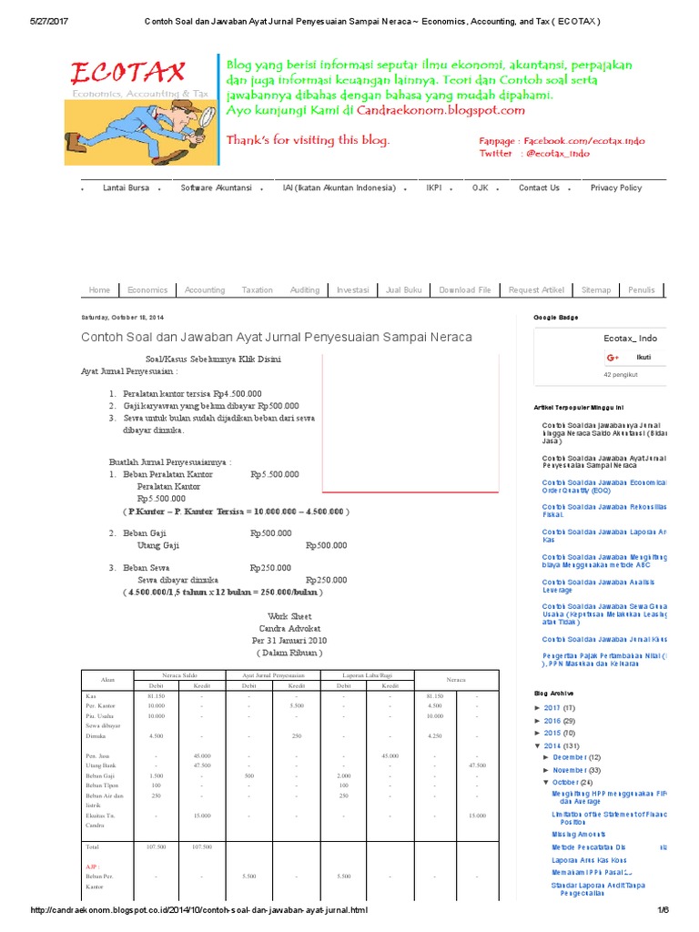 Contoh soal dan jawaban ayat jurnal penyesuaian sampai neraca.