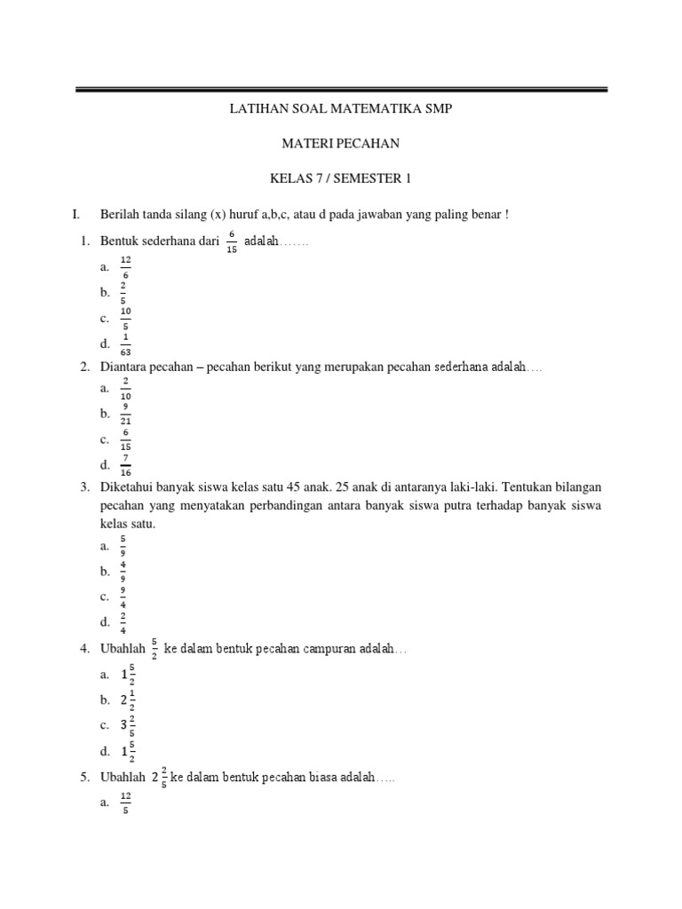 Soal Pecahan. Dalam mata pelajaran matematika untuk kelas 4 sekolah dasar (sd), salah satu materi yang dipelajari adalah tentang pecahan. 55+ soal matematika kelas 5 pecahan pilihan ganda & isian.