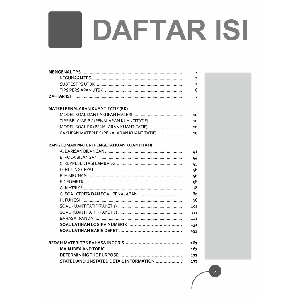 Setiap jawaban benar mendapat skor 5, jawaban kosong mendapat skor 1, dan jawaban salah mendapat skor 0. Apr 30, 2020 · topik : Tes potensi skolastik (tps) terdiri dari: Jun 20, 2020 · salah satu muatan dalam tps utbk adalah ranah pengetahuan kuantitatif, yang mencakup soal mengenai pola dan barisan bilangan, teori bilangan dasar, serta manipulasi bentuk aljabar dan geometri dasar.