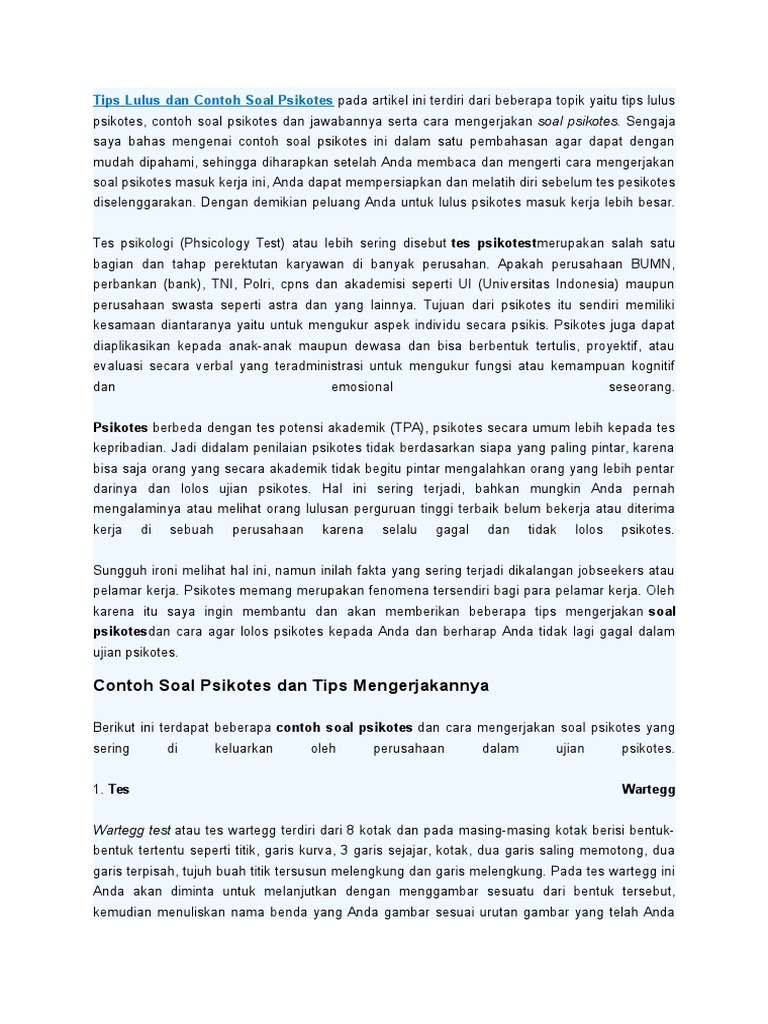 3 contoh soal tes psikotes gambar orang dan jawabannya tes psikotes kepribadian epps ( edwards personal preference schedule ) salah satu tes psikotes kepribadian yang banyak diujikan dalam rekrutmen pegawai maupun mahasiswa baru adalah tes psikotes kepribadian epps atau edward personal preference schedule.