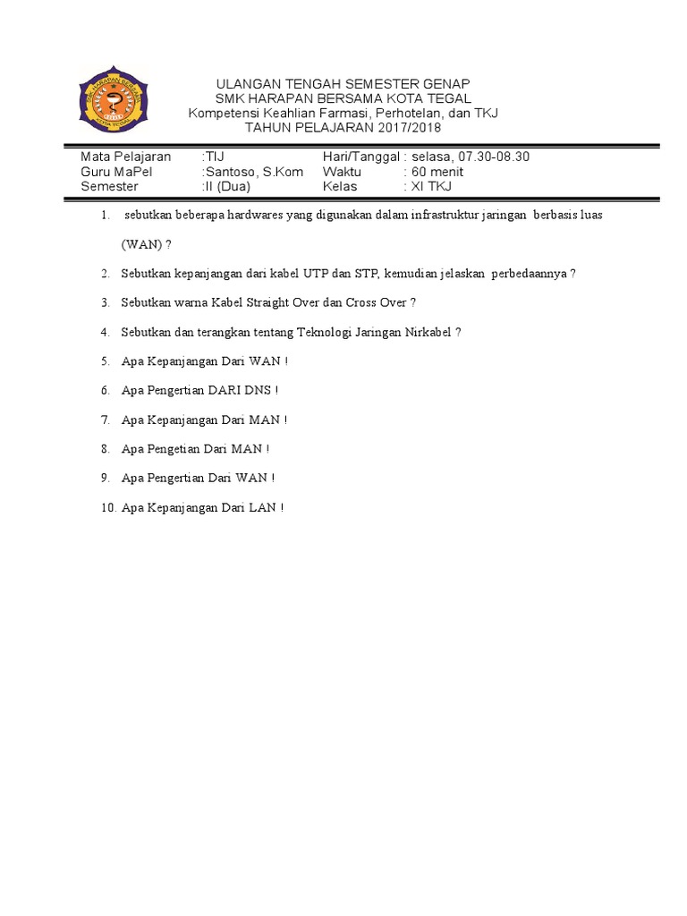 Soal Wan Kelas 11 Semester 2. Berbagi pakai perangkat keras (hardware) b. Mar 13, 2021 · soal dan jawaban teknologi wan kelas 11 semester 2.